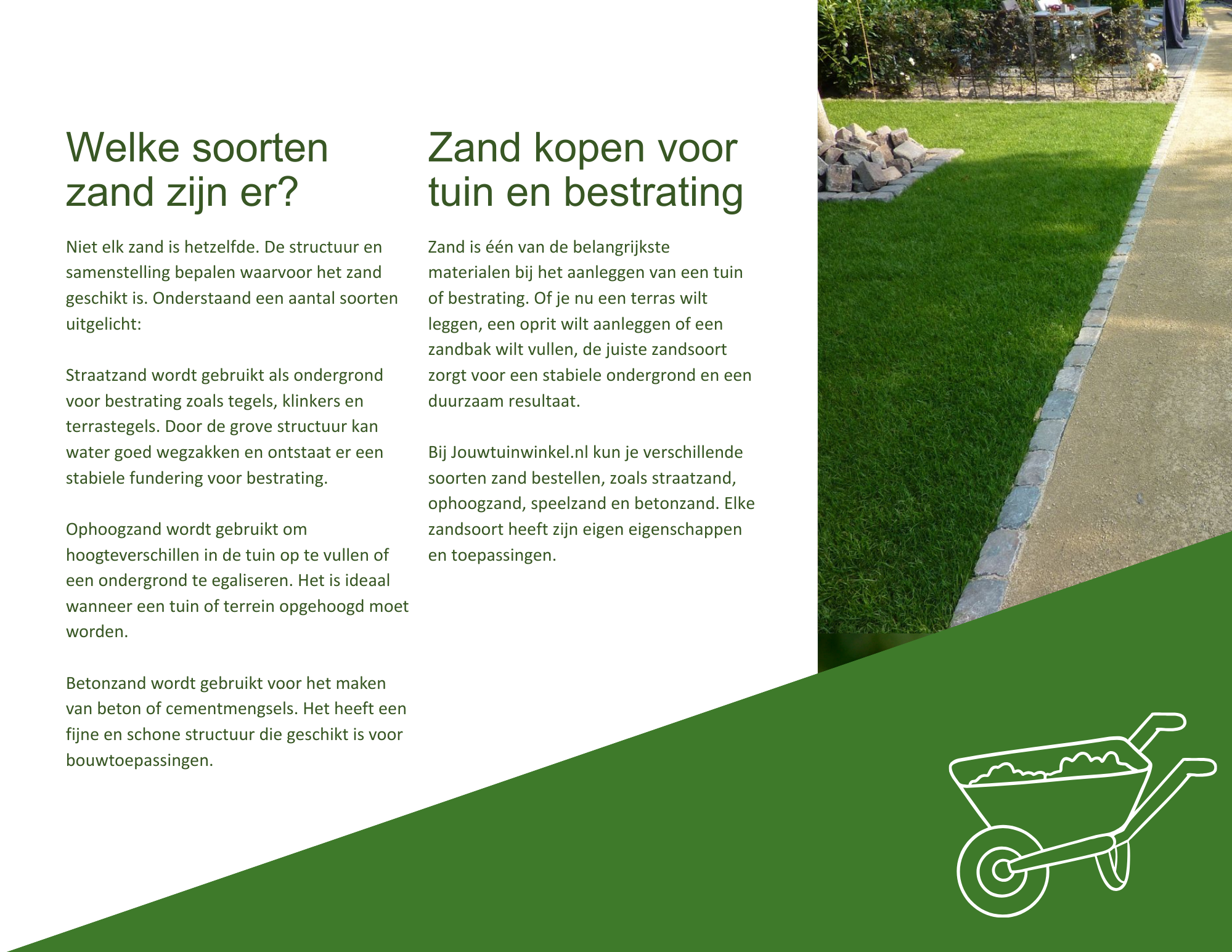 Ophoogzand wordt gebruikt om hoogteverschillen in de tuin op te vullen of een ondergrond te egaliseren. Het is ideaal wanneer een tuin of terrein opgehoogd moet worden.